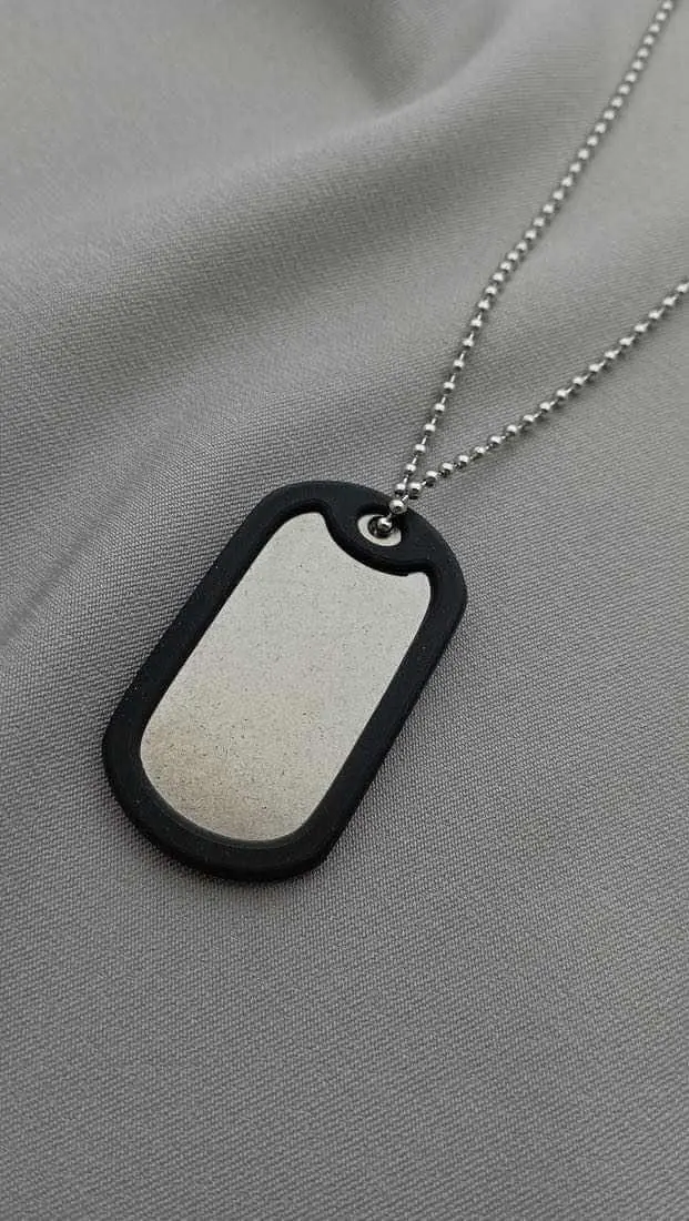 | *** | Жетон з гравіюванням, кульковий сріблястий ланцюжок 60 см (діаметр кульки 2,4 мм), гіпоалергенний гумовий бампер, кліпса |
