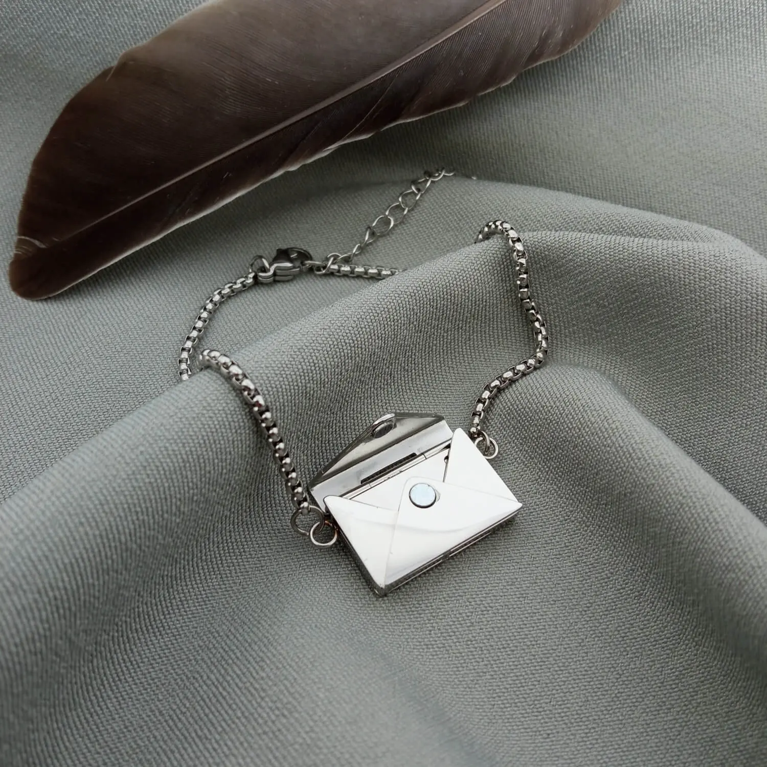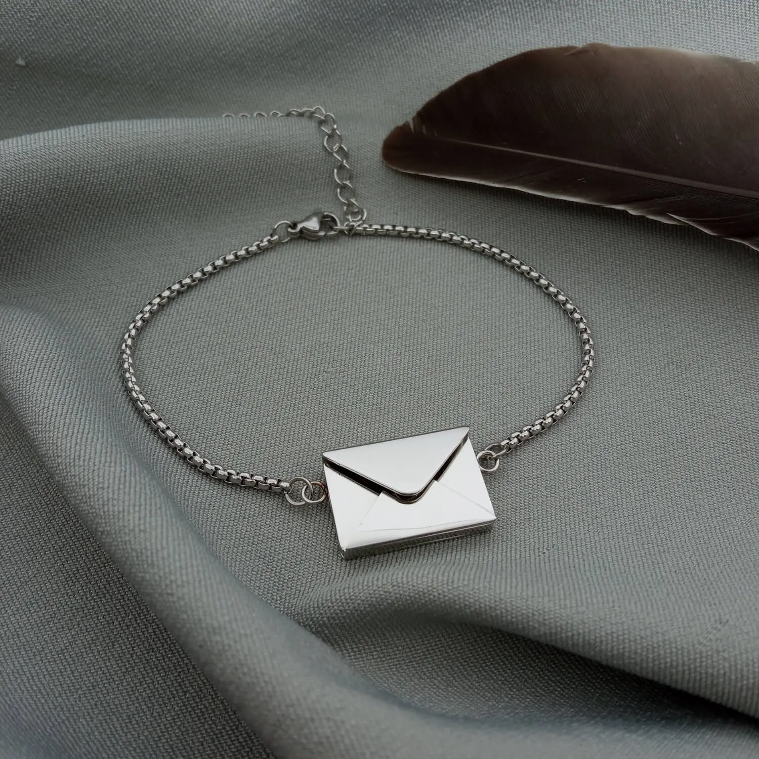 Стильний браслет "Конверт" – це витончений спосіб сказати найголовніше без слів. Усередині сріблястого конвертика приховано маленький лист-послання, на якому може бути вигравіюване ваше особисте побажання, фраза, символ чи навіть мініатюрне зображення.