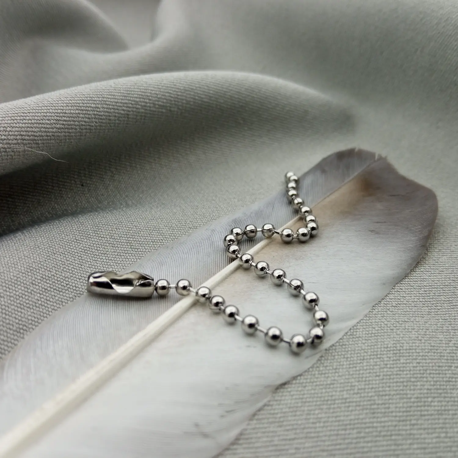 Ланцюжок кульковий з неіржавіючої сталі. Не темніє, не іржавіє, не фарбує шкіру, стійкий до води. Розмір - 10 см.
