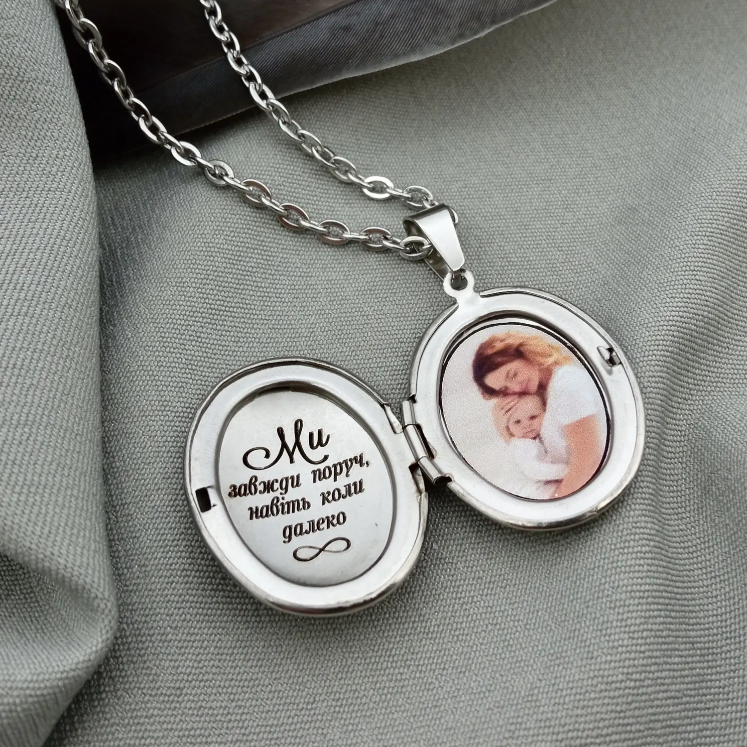 Унікальний Фотокулон з персональним лазерним гравіюванням та Вашою фотографєю всередині – це неймовірна та потаємна прикраса, що буде оберігати в собі найдорожчих для Вас людей та завжди тримати їх поруч. Високоточне обладнання збереже деталізацію фотографії, а ювелірна нержавіюча сталь, з якої виконана прикраса, гарантує її якість та довготривале використання. Ланцюжок в колір прикраси входить до комплекту.