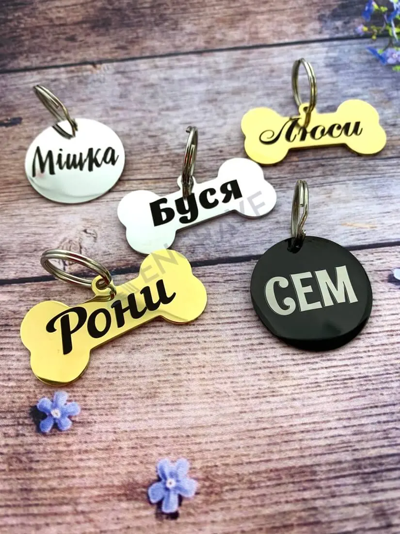 Адресник круглий - один з популярних варіантів форми виготовлення. Він відмінно підійде не тільки для собак, а й для кішок та інших домашніх тварин різних розмірів. Матеріал для виготовлення виробу - високоміцна сталь 316L, яка не іржавіє і максимально довговічна. За кольоровою гамою адресники для тварин можна замовити в 4-х варіантах: з ними ви можете ознайомитися у нас на сайті. Спосіб нанесення - гравіювання лазером, що дозволяє з легкістю розміщувати і текст, і картинку, роблячи їх красивими та довговічними.