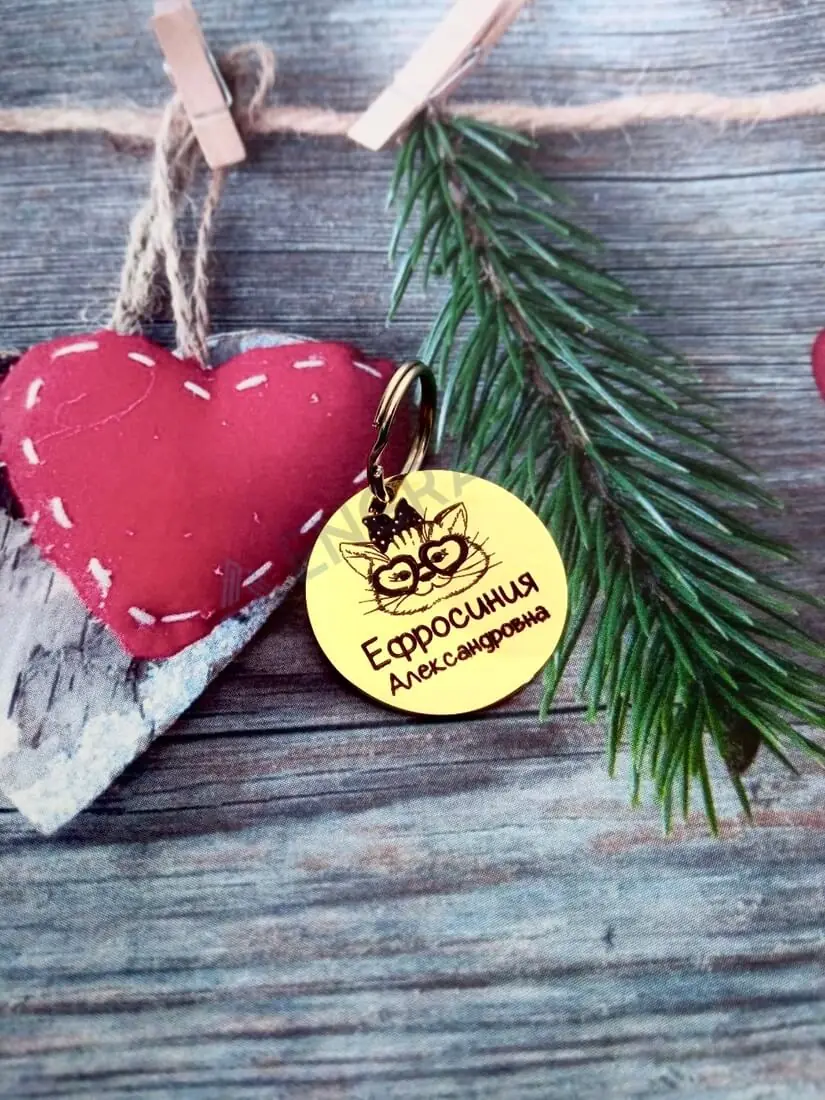 | *** | Круглий адресник з гравіюванням, сталеве кільце для кріплення. |