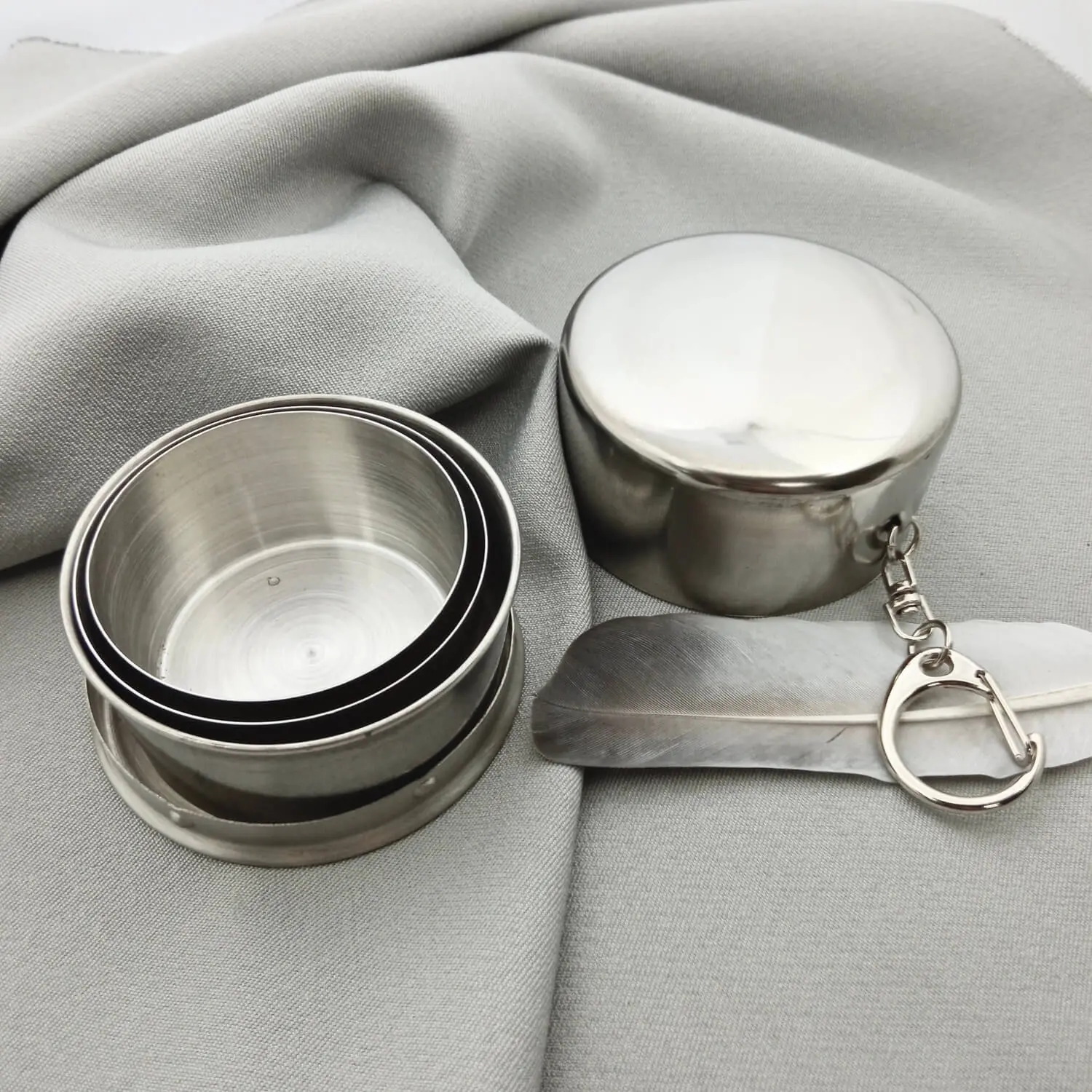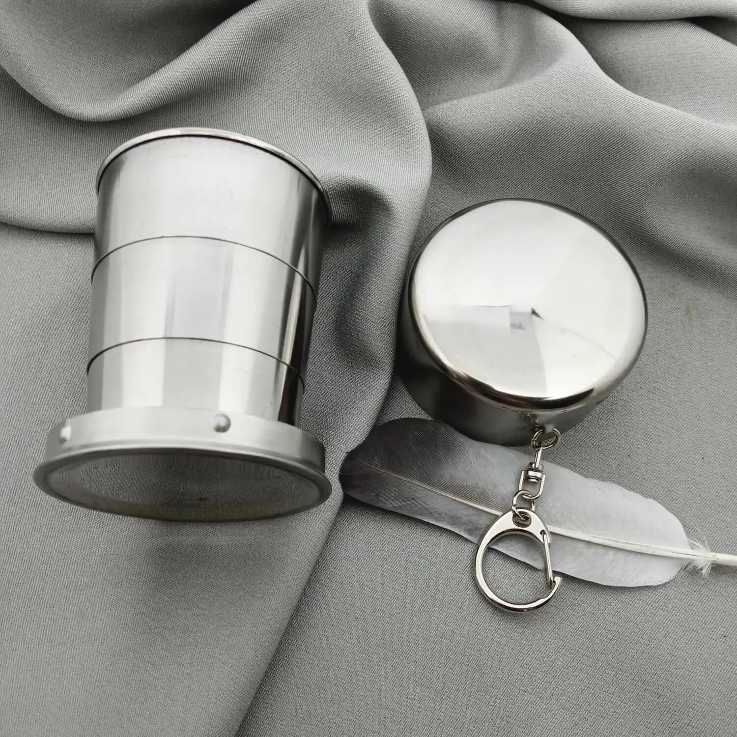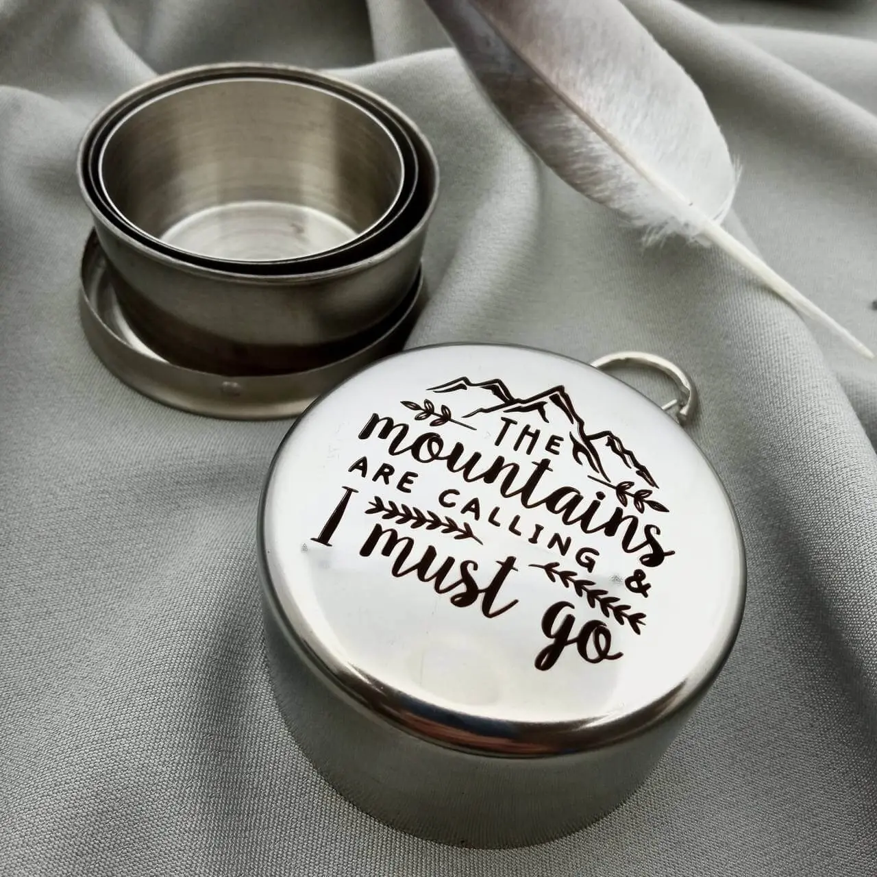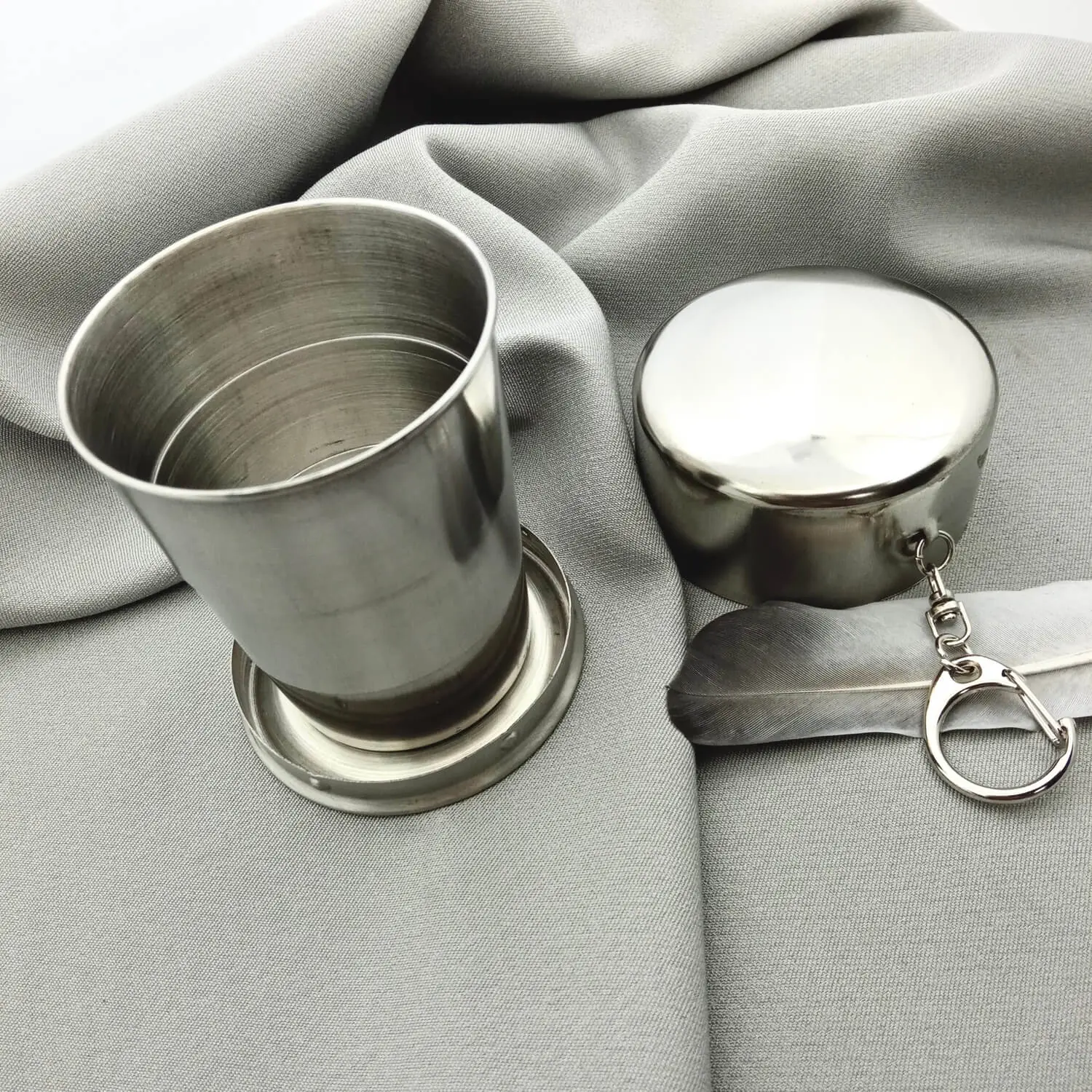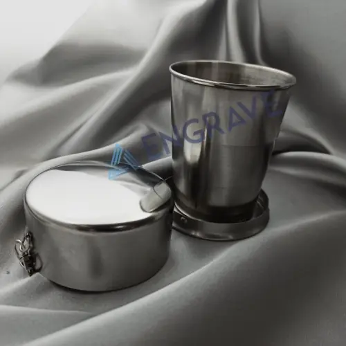 Легка та зручна складана склянка з харчової нержавіючої сталі – це невід’ємний аксесуар для мандрівників, військових та любителів активного відпочинку. Надійна конструкція та перевірені якісні матеріали гарантують не тільки довготривале використання в екстремальних умовах, а також дозволяють нанесення індивідуального лазерного гравіювання будь-якого тексту, зображення або навіть фотографії на своїй поверхні. Додатково комплектується карабіном, який легко кріпиться до сумки або рюкзака.