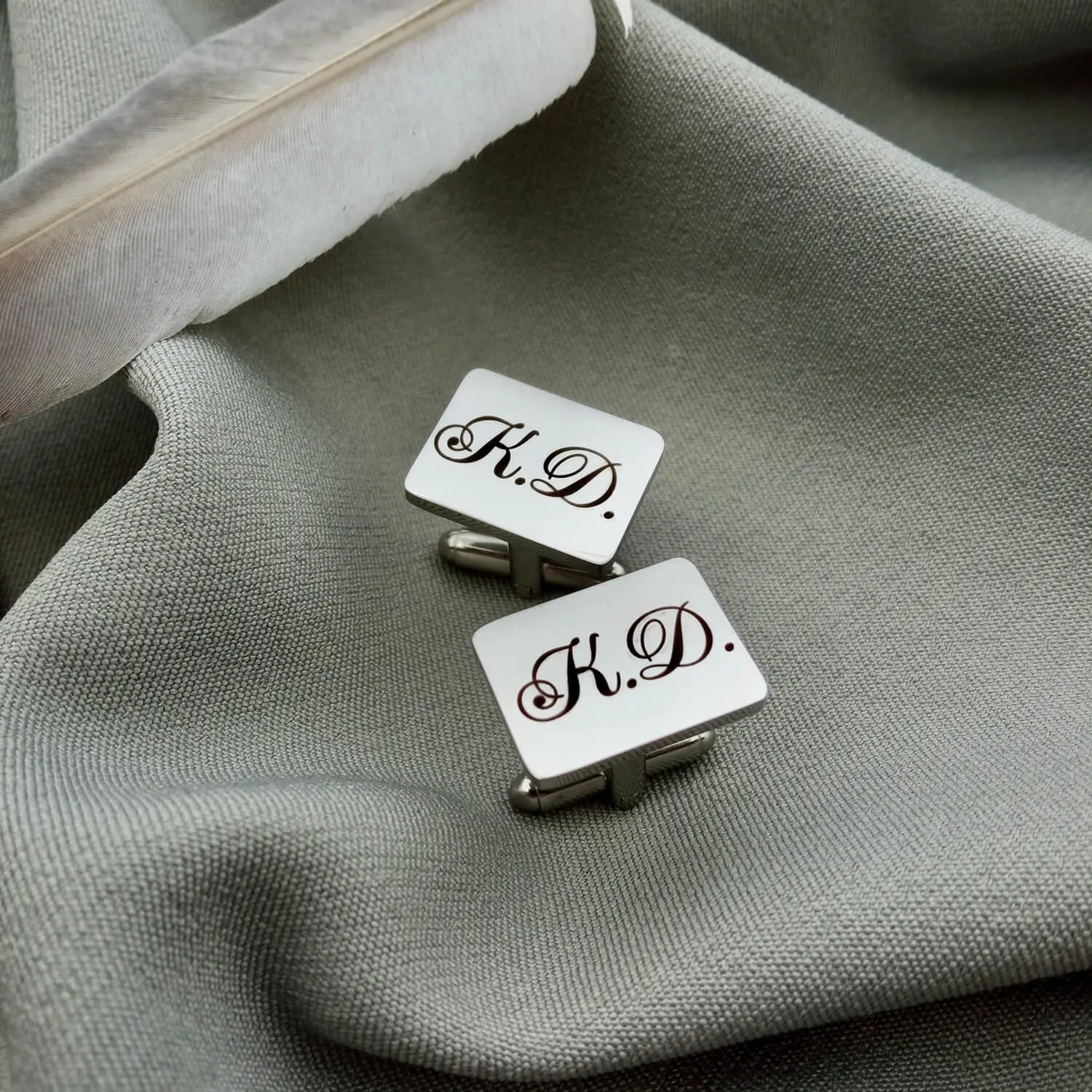 Металеві запонки з індивідуальним гравіюванням і подарунковою дерев'яною коробочкою.